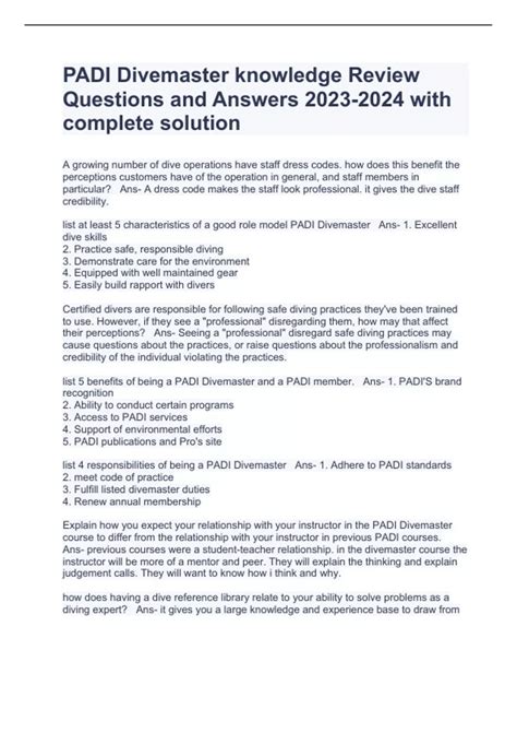 Download DIVEMASTER KNOWLEDGE REVIEW ANSWERS Reader